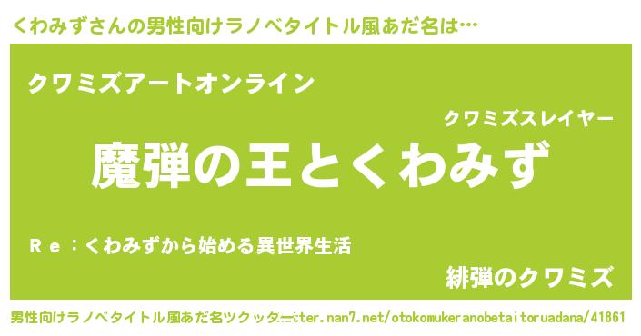 | 意味不明あだ名 | 『住所不定無職くわみず(77歳)』 |