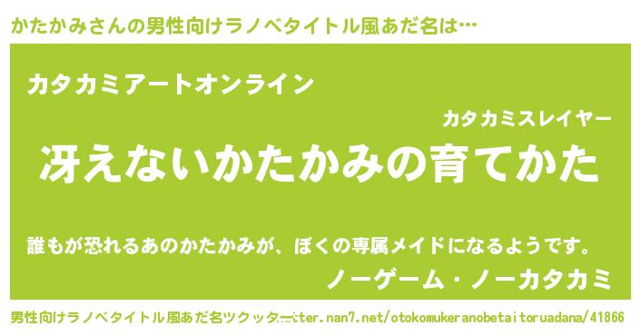 | 胡散臭い通販商品みたいなあだ名 | 『モテモテ間違いなし霊験あらたかなお札…その名も「かたかみ」』 |