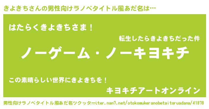 | 伝説のあだ名 | 『救世主となる錬金術士きよきち』 |