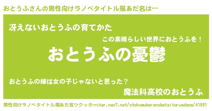 | 胡散臭い通販商品みたいなあだ名 | 『必ず成功する霊験あらたかなお札…その名も「おとうふ」』 |