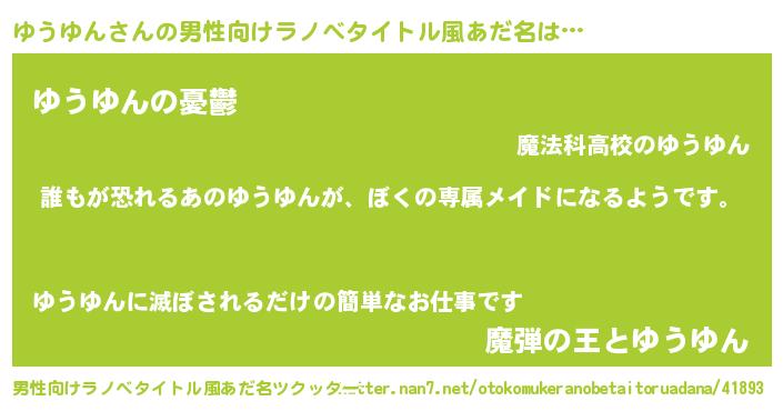 | ファンタジー風あだ名 | 『ユウディッシュ』『ユウフェル』 |