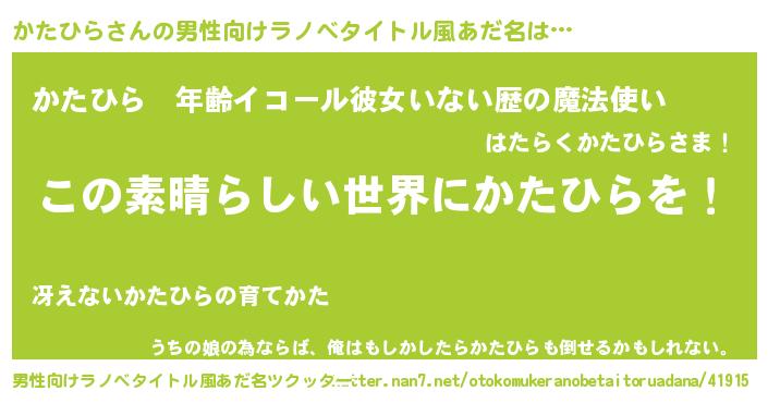 | 胡散臭い通販商品みたいなあだ名 | 『あなたにだけ特別に提供する100年もののヴィンテージワイン…その名も「かたひら」』 |