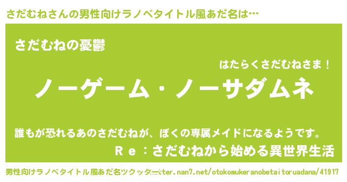 | ヒーロー風カッコイイあだ名 | 『慈愛の使者さだむね』『ネオサダムネ』 |
