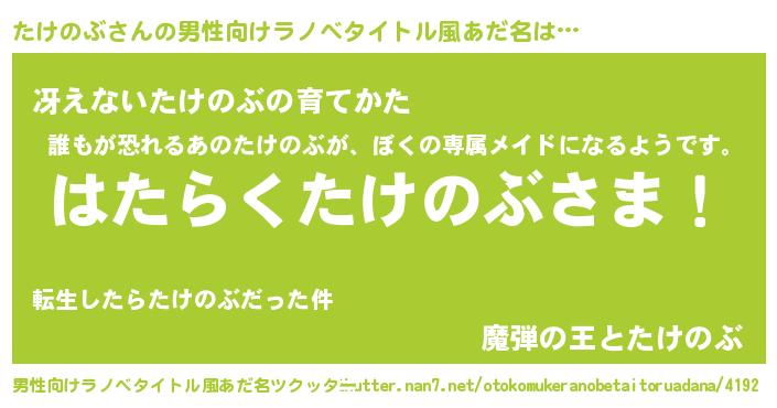 | ヘコむあだ名 | 『たけのぶ(爆)』『たけっぺ』 |