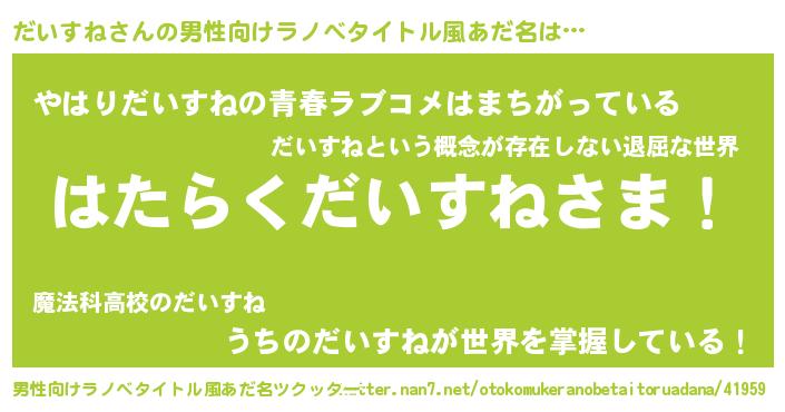 だいすねさんの男性向けラノベタイトル風あだ名をツクッター!