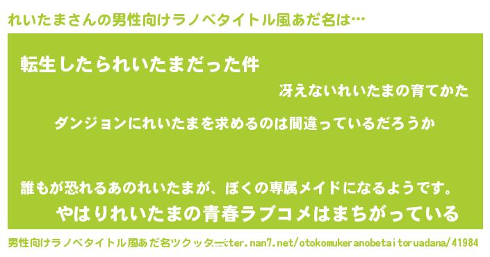 | 女子向けラノベタイトル風あだ名 | 『れいたまは平凡を望む』 |
