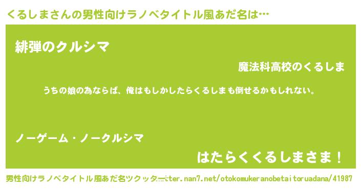| 女子向けラノベタイトル風あだ名 | 『くるしまの婚約者』 |
