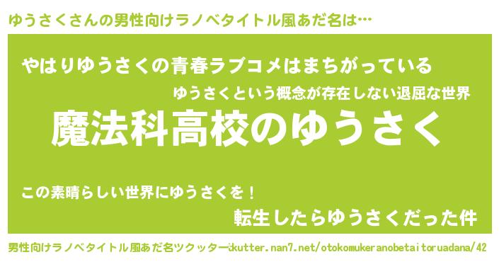 | 意味不明あだ名 | 『自称ゆうさく』『ゆうさくフォーエバー』 |