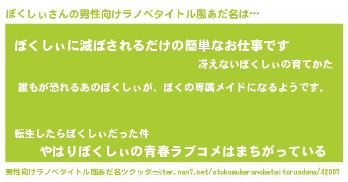 | 女子向けラノベタイトル風あだ名 | 『異世界でカフェぼくしぃを開店しました。』 |