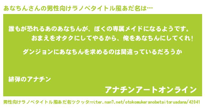 | 女子向けラノベタイトル風あだ名 | 『あなちんは平凡を望む』 |