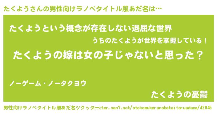 | 胡散臭い通販商品みたいなあだ名 | 『伝統あるサプリメント…その名も「たくよう」』 |