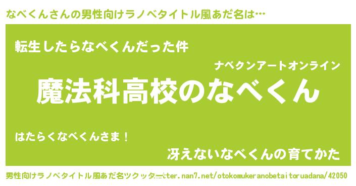 | 女子向けラノベタイトル風あだ名 | 『なべくんアンティーク』 |