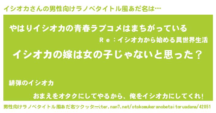 | 女子向けラノベタイトル風あだ名 | 『イシオカ様がみてる』『イシオカ恋絵巻』 |