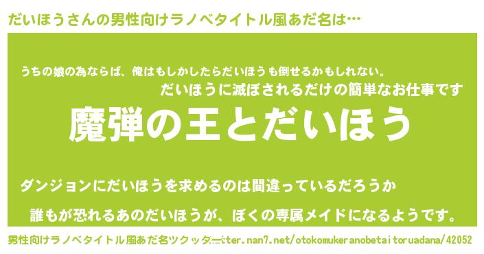 | ヒーロー風カッコイイあだ名 | 『仮面ダイダー』『ウルトラだいほうマン』 |