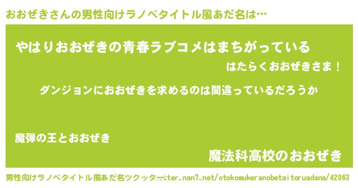 | 女子向けラノベタイトル風あだ名 | 『おおぜきは平凡を望む』 |