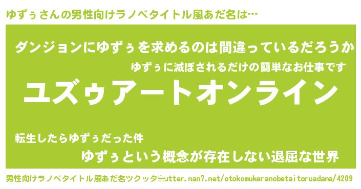 | 胡散臭い通販商品みたいなあだ名 | 『億万長者になれる水晶球…その名も「ゆずぅ」』 |