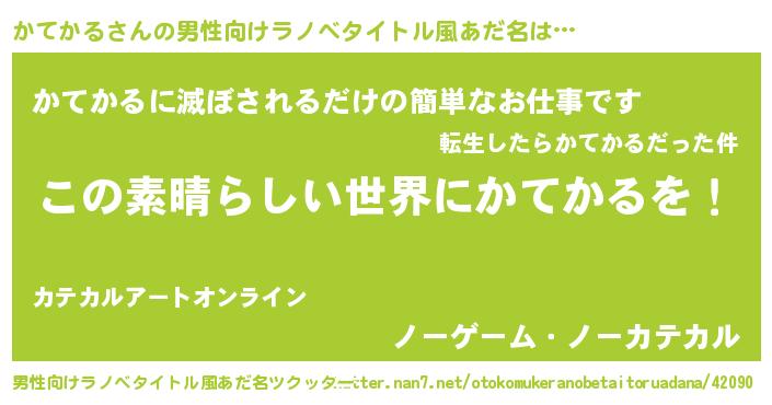 | 胡散臭い通販商品みたいなあだ名 | 『あなたにだけ特別に提供する限定10本のレアな日本酒…その名も「かてかる」』 |