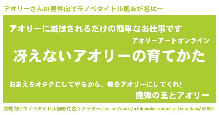 | ヒーロー風カッコイイあだ名 | 『仮面アオダー』『スーパーアオリー』 |