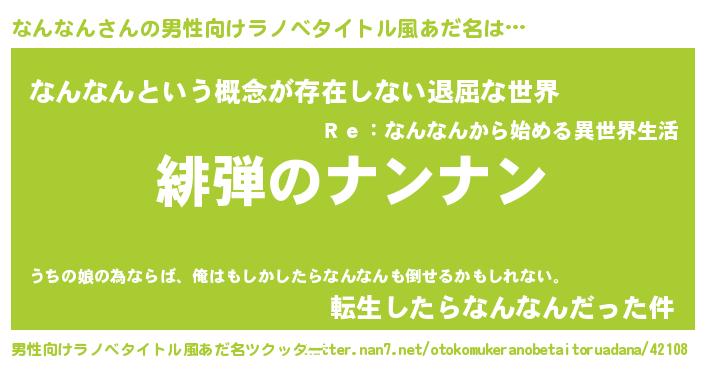 | 意味不明あだ名 | 『永久保存なんなん』『自称なんなん』 |