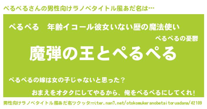 | 女子向けラノベタイトル風あだ名 | 『乙女ゲームの破滅フラグしかない悪役ぺるぺるに転生してしまった…』 |