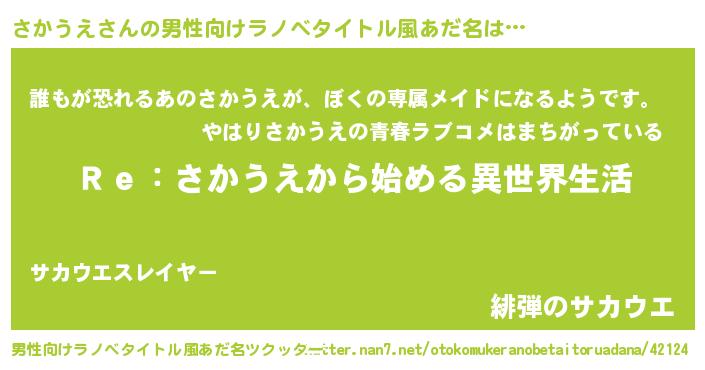 | 女子向けラノベタイトル風あだ名 | 『さかうえストレイドッグス』 |