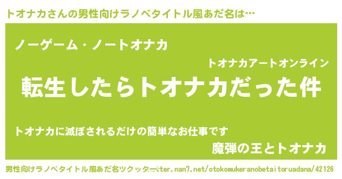 | 女子向けラノベタイトル風あだ名 | 『トオナカの玉の輿計画!』 |