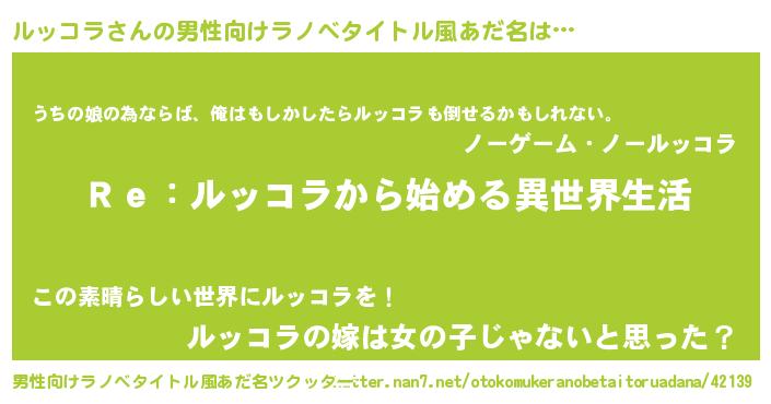 | ヘコむあだ名 | 『酢こんぶ』『ルッお』『ルッにー』 |