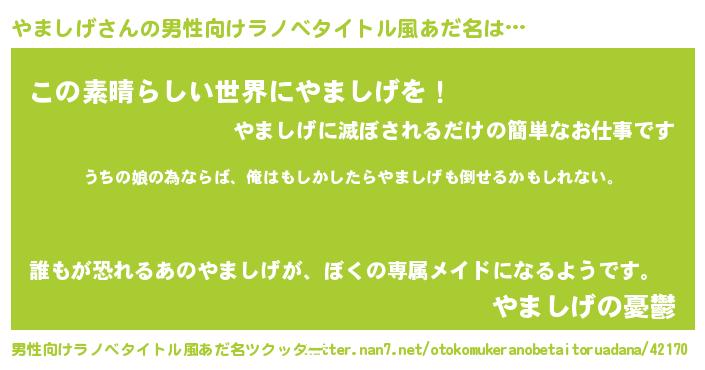 | ファンタジー風あだ名 | 『エターナルヤマシゲー』『ヤマフェル』 |