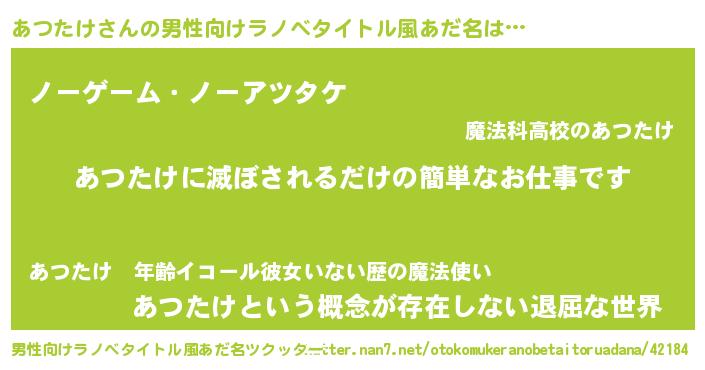 | 女子向けラノベタイトル風あだ名 | 『横柄あつたけと宰相陛下』 |
