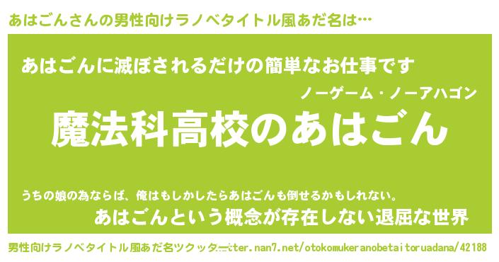| 意味不明あだ名 | 『自称あはごん』『永久保存あはごん』 |