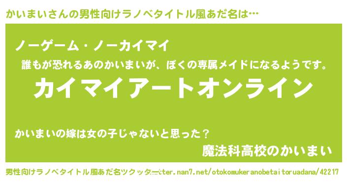| 意味不明あだ名 | 『ペロリンかいまい』『自称かいまい』 |