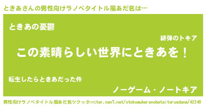 | 女子向けラノベタイトル風あだ名 | 『乙女ゲームの破滅フラグしかない悪役ときあに転生してしまった…』 |