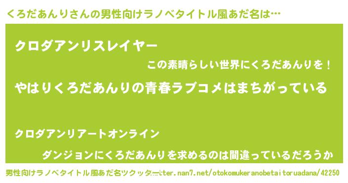| 女子向けラノベタイトル風あだ名 | 『くろだあんりの雑貨屋さん』 |
