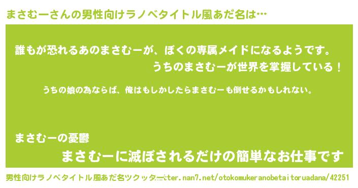 | 女子向けラノベタイトル風あだ名 | 『まさむーの婚約者』 |