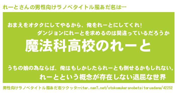 | 肩書あだ名 | 『れーと総統』『れーと助教授』 |