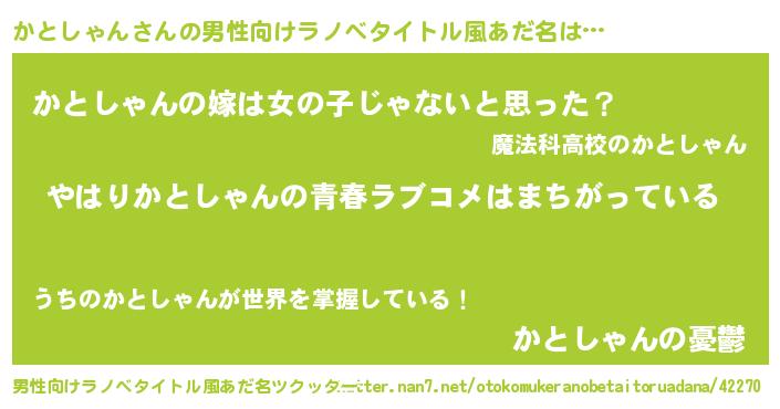 | 女子向けラノベタイトル風あだ名 | 『かとしゃんの雑貨屋さん』 |