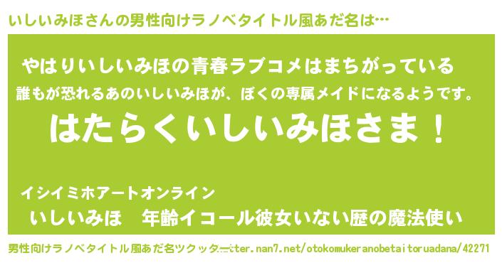 | ファンタジー風あだ名 | 『エターナルイシイミホー』『イシフェル』 |