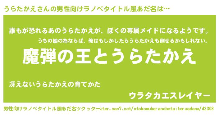 | 意味不明あだ名 | 『住所不定無職うらたかえ(13歳)』 |