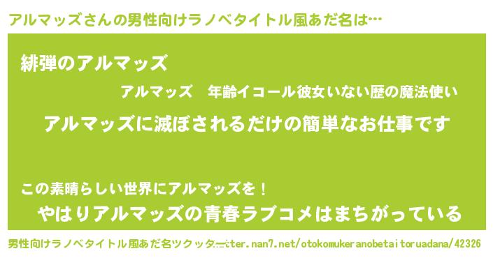 | 意味不明あだ名 | 『アルマッズフォーエバー』 |