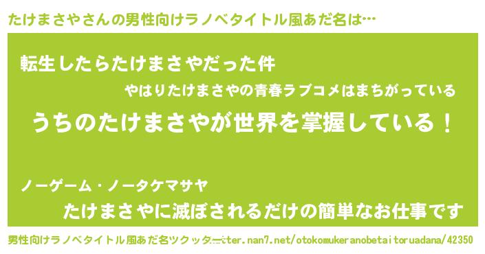 | 女子向けラノベタイトル風あだ名 | 『男装たけまさやの憂鬱な任務』 |