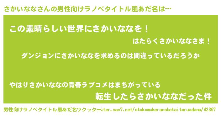 | 女子向けラノベタイトル風あだ名 | 『さかいななの卵を拾いまして』 |