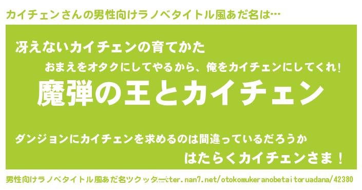| ヒーロー風カッコイイあだ名 | 『仮面カイダー』『慈愛の使者カイチェン』 |