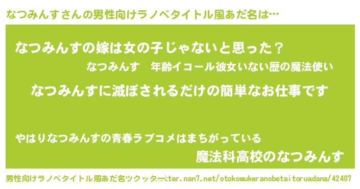 | 意味不明あだ名 | 『とにかく怪しいなつみんす』 |