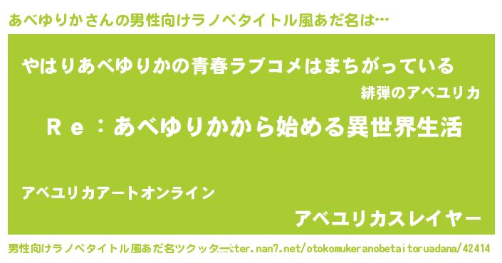 | 女子向けラノベタイトル風あだ名 | 『あべゆりかストレイドッグス』 |