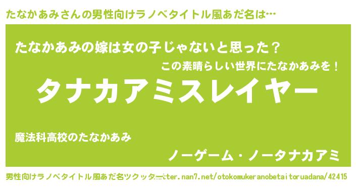 | ヒーロー風カッコイイあだ名 | 『暗黒騎士タナ』『天空の使者たなかあみ』 |