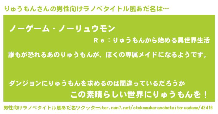 | ヘコむあだ名 | 『りゅうもん(遠い目)』『りゅっちょ』 |