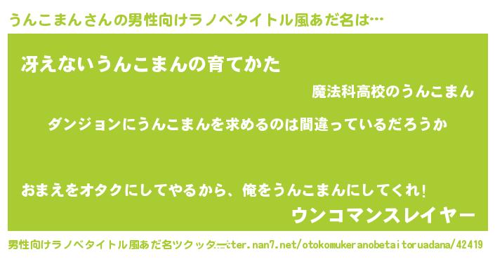 | 女子向けラノベタイトル風あだ名 | 『うんこまんは平凡を望む』 |