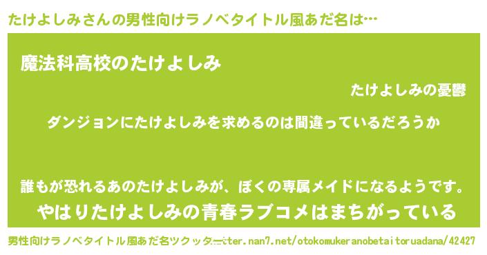 | 女子向けラノベタイトル風あだ名 | 『たけよしみの卵を拾いまして』 |