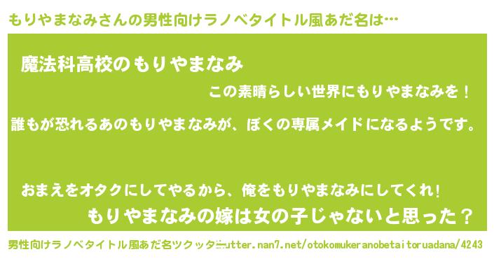 肩書あだ名 | 『もりやまなみ担任』『もりやまなみ閣下』 |