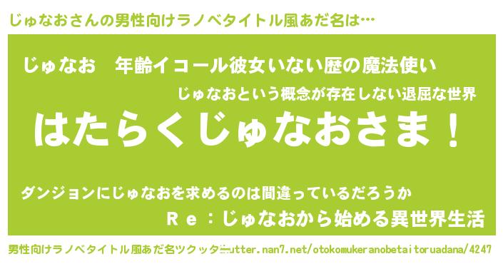 | 胡散臭い通販商品みたいなあだ名 | 『ガンによく効く冬虫夏草…その名も「じゅなお」』 |